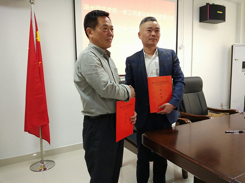 浙江明境環(huán)保科技有限公司與湖州師范學(xué)院,共建大學(xué)生校外教育基地,強化及細化校企合作的簽約