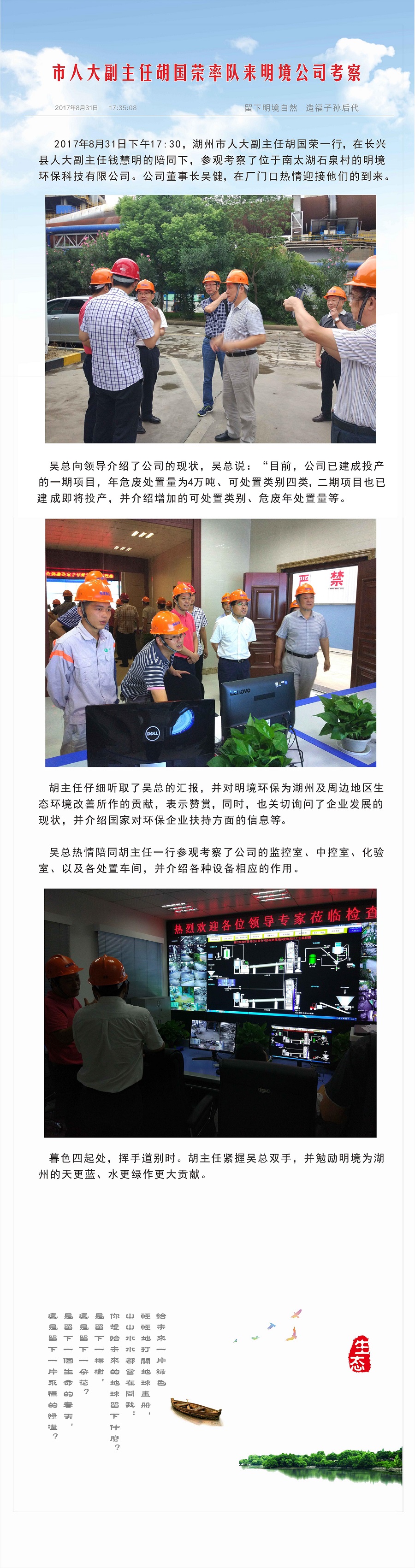 市人大副主任胡國榮率隊來明境公司考察
