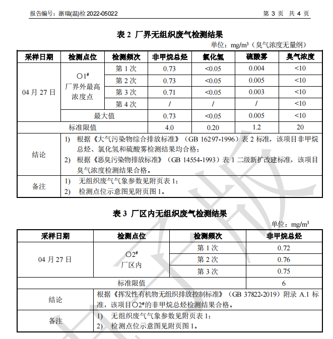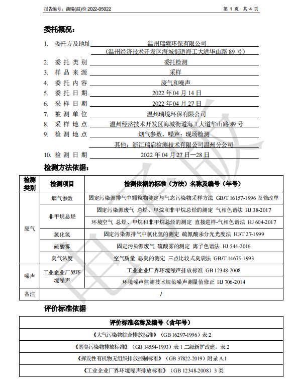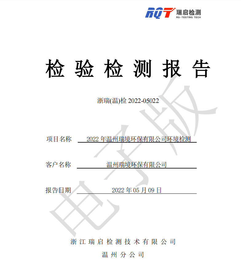 關(guān)于2022年溫州瑞境環(huán)保科技有限公司環(huán)境檢測報告的公示