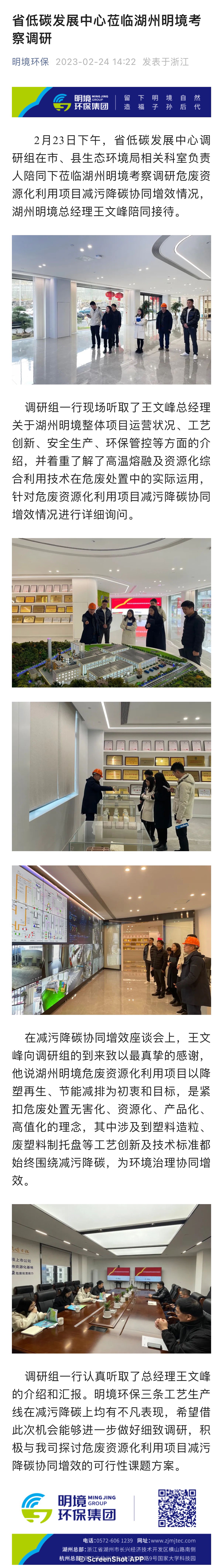 省低碳發(fā)展中心蒞臨湖州明境調(diào)研減污降碳協(xié)同增效情況