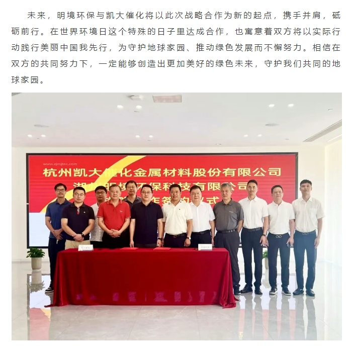 世界環境日,簽約啟新程 | 明境環保與凱大催化達成戰略合作